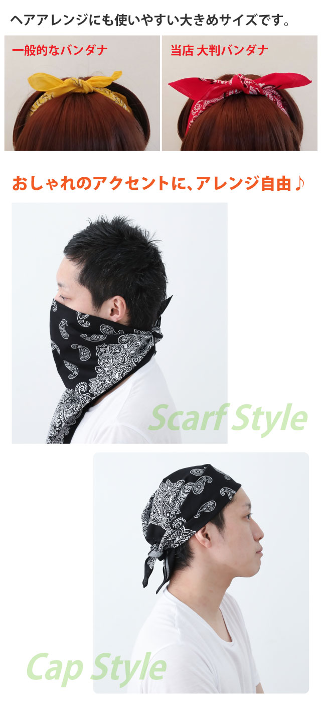 一般なバンダナより10cm以上大きいサイズの大判バンダナ登場!