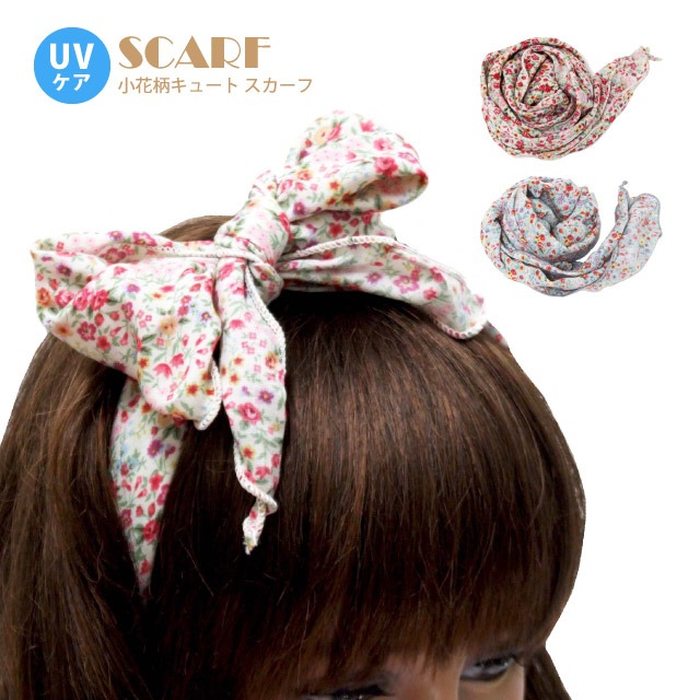 スカーフ 小花柄キュート スカーフカチュー 全2色 st-058 メール便は送料無料 レディース 女性 春夏 UV 紫外線 お花 花柄 リボン ヘアバンド ターバン おしゃれ スカーフ 布 カチューシャ バンダナ