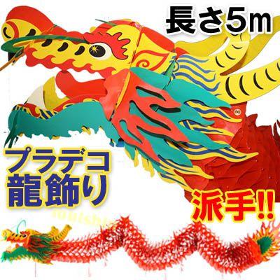 派手でめだつ中国赤龍飾り5m (送料無料)(沖縄別途2500円) |中国,伝統,宮灯,宮燈,プラデコ,中華街,お土産,提灯,紅,赤,折り畳み,ビニール,プラスチック,デコレーション