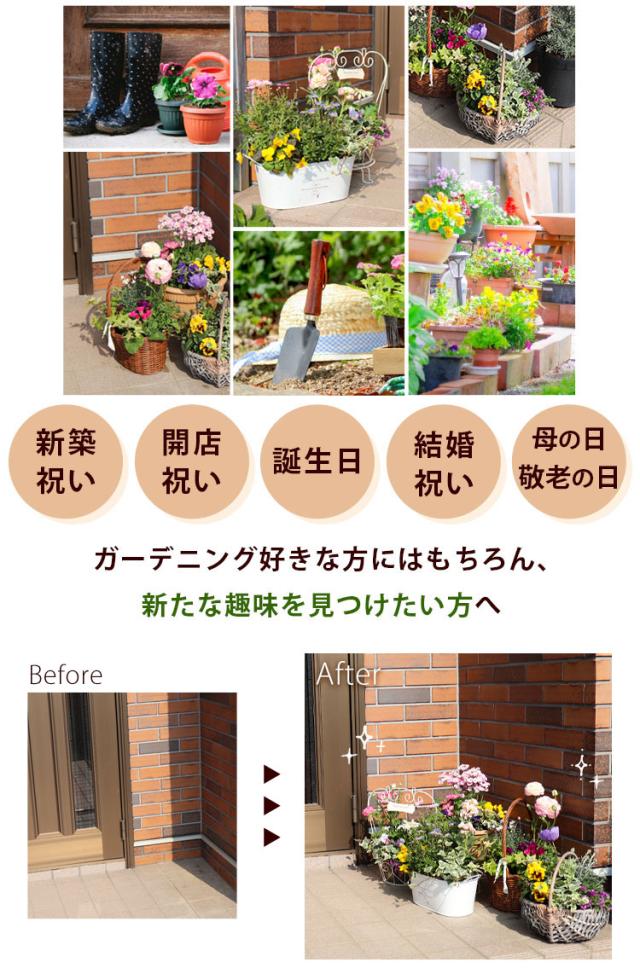 ※入荷状況により、植物の色・種類・資材のデザインが予期なく変更になる場合がございます。 ご了承くださいませ。