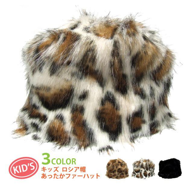 キッズ 帽子 あったかファーハット ふわふわロシアンファー帽 2サイズ 全3色 kids-137 メール便は送料無料 秋冬 防寒 暖かい 子供 女の子 親子 おそろい ヒョウ柄 フェイクファー ロシア帽