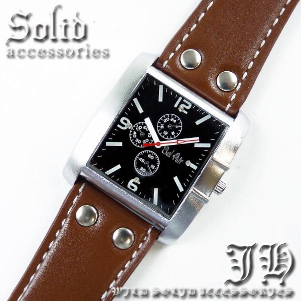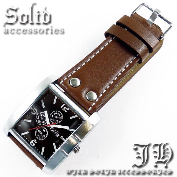 送料無料 腕時計 スクエアフェイス アナログ 革ベルト ブラウン ブラック 茶 黒 【 tv6 】