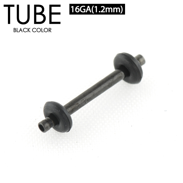 【メール便対応】チューブ ブラック 16G(1.2mm) BLACK カラー 両側をゴムで固定 定番ボディーピアス アイレット スタイリッシュ イヤーロブ ホールトゥピアス 16ゲージ(1.2ミリ)┃