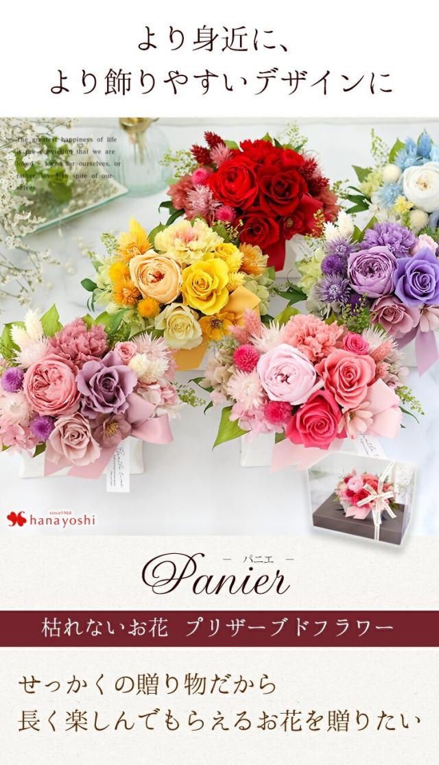 プリザーブドフラワー Panier パニエ ケース入 バラ 枯れない 花 誕生日 プレゼント 女性 妻 ギフト 結婚祝い 結婚記念日 開店祝い 開業祝い 開院祝い 退職祝い 男性 お誕生日 古希 喜寿 米寿 傘寿 卒寿 百寿 法人 ブリザードフラワーお祝い お歳暮 冬ギフト クリスマス