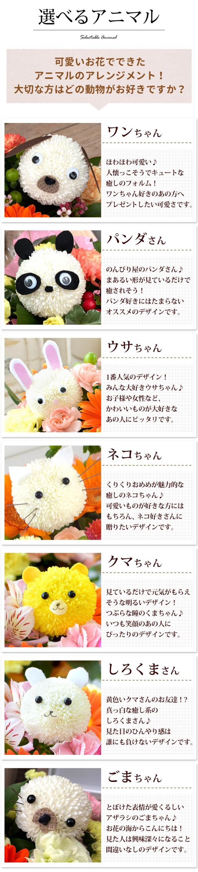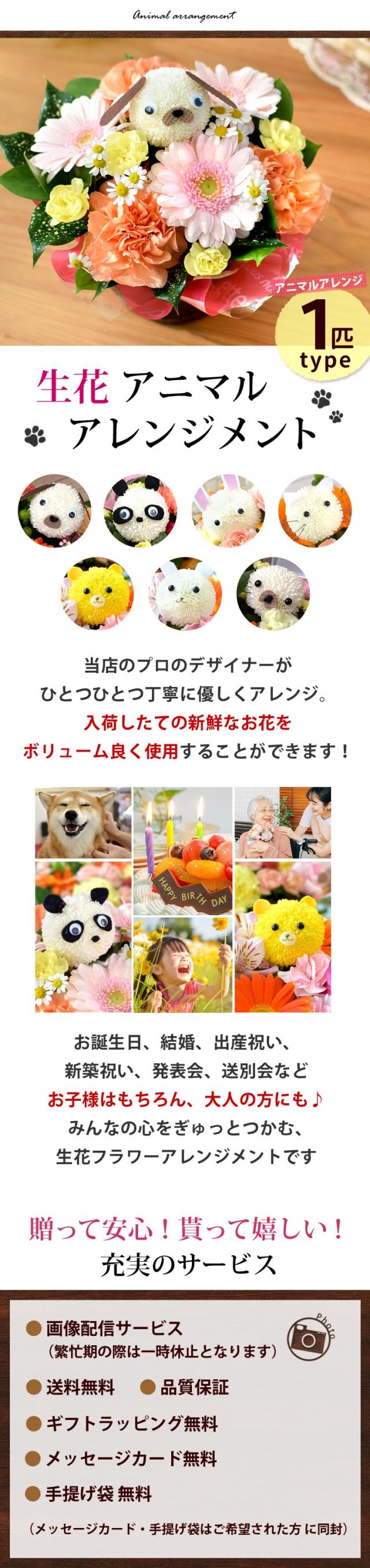 生花 フラワーアレンジメント 7種の動物から選べる アニマルアレンジ 1匹ver フラワー ギフト お誕生日 パンダ うさぎ くま 犬 猫 ペット 花 誕生日 プレゼント 女性 母 子供 女の子 発表会 お祝い 歓迎会 開店祝い 楽屋花 お歳暮 冬ギフト クリスマス いい夫婦の日 お正月