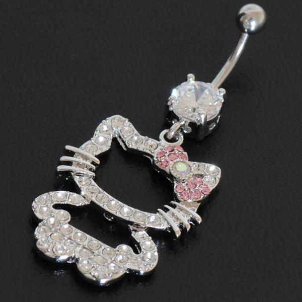 メール便 送料無料 ヘソピアス ゴージャス ラインストーン キャット 14GA(1.6mm) 【ボディピアス ラインストーン ヘソピ バナナバーベル ネイブル キラキラ】HESO-10006 ┃