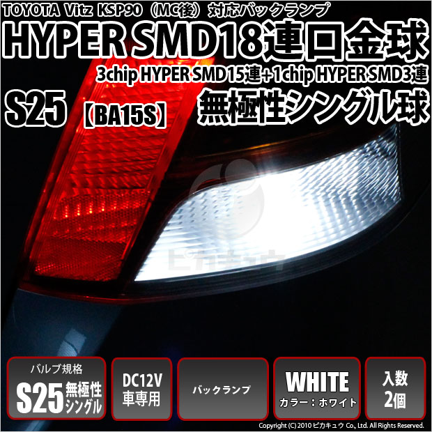 トヨタ ヴィッツ (90系 後期) 対応 LED バック球 S25S (BA15S) 対応 LED HYPER SMD18連口金LED ホワイト2球 7-A-2