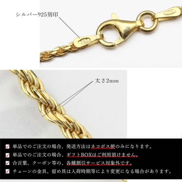 ネックレス チェーンのみ ロープチェーン 太さ約2mm イエローコーティング シルバー925 ネックレス チェーン ハワイアンジュエリー メンズ レディース 誕生日 プレゼント ホワイトデー 卒業式 入学式 【品番:SCH27】