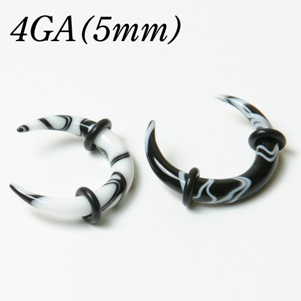 【メール便対応】UVアクリル バッファロー ブラック or ホワイト マーブル 4G(5mm) 黒 白 両側をゴムで固定 デザイン ボディピアス ボディーピアス 4ゲージ(5ミリ)┃