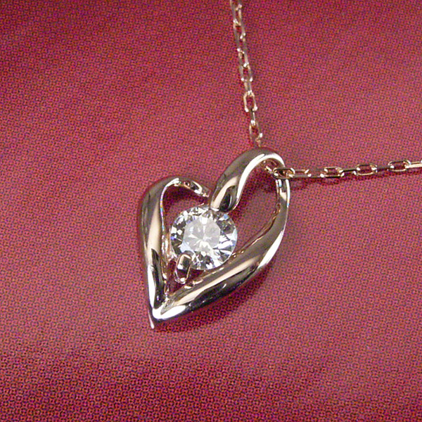 上質18金に0.1カラットの天然ダイヤモンドをセットしたオープンハートネックレスをお届け致します。