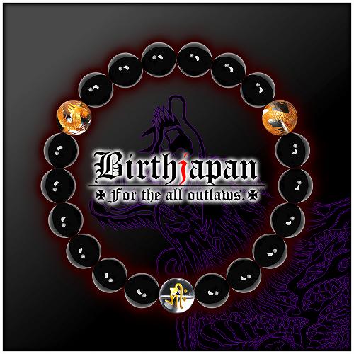 標準10mm オニキス×梵字金龍水晶数珠ブレスレット アクセサリーホストヤクザチョイワルちょい悪 悪羅悪羅系オラオラ系 悪党の店 バースジャパン BIRTHJAPAN