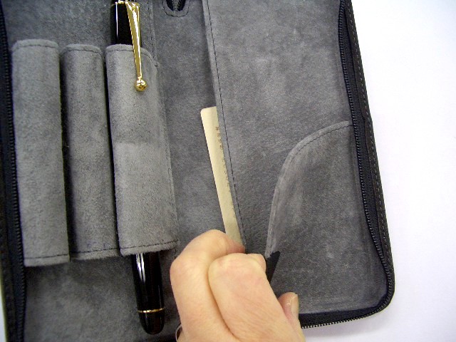 表面は牛革、内側に柔らかい革(ピッグスウェード)を使い、大切なペンをしっかり保護します。