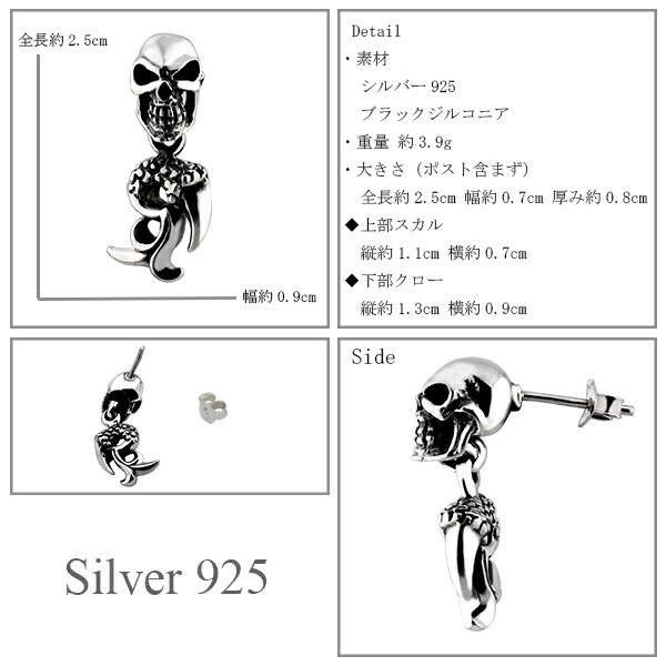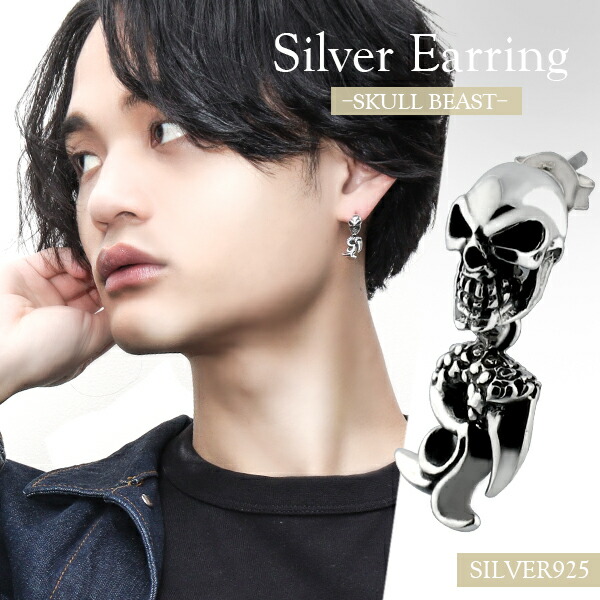 スカル ビースト クロー シルバーピアス 1P メンズ ピアス ハード 銀の蔵 髑髏 ドクロ シルバー925 メンズピアス 男性用ピアス プレゼント 人気
