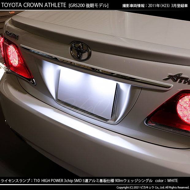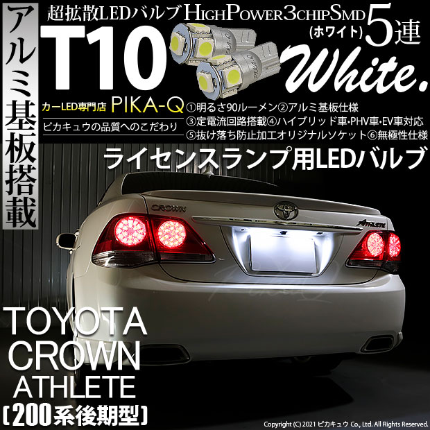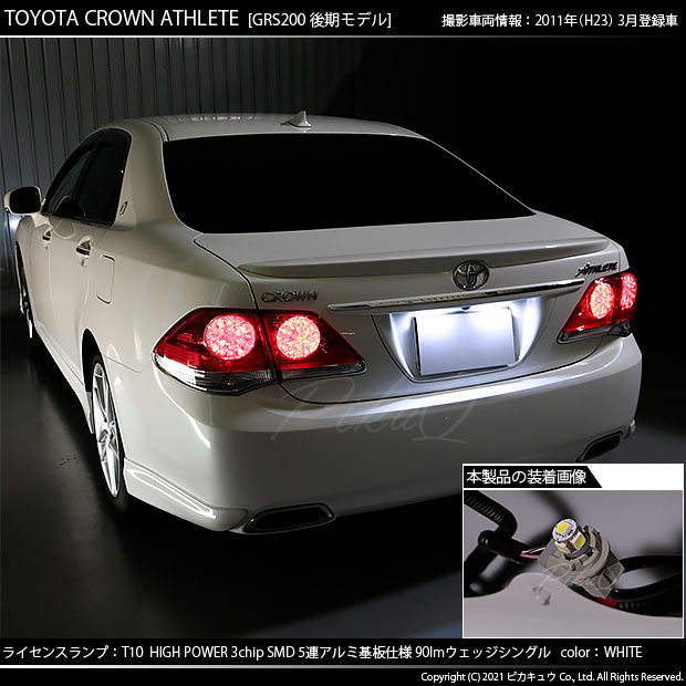 ピカキュウ,LED専門店,LEDバルブ,LED,SMD,T10,W5W,T10 HIGH POWER 3CHIP SMD 5連ウェッジシングル球,アルミ基板,90lm,長持ち,ホワイト,ライセンスランプ,番号灯,トヨタ,200系クラウン,クラウン,アスリート,TOYOTA,CROWN ATHLETE,GRS200,後期,