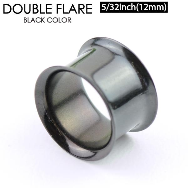 メール便 送料無料 ダブルフレア アイレット ブラック 5/32インチ(12mm) BLACK カラーコーティング加工 サージカルステンレス スタイリッシュ シンプル 定番ボディーピアス ホールトゥピアス 12ミリ ┃