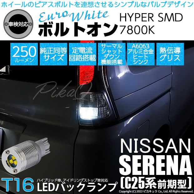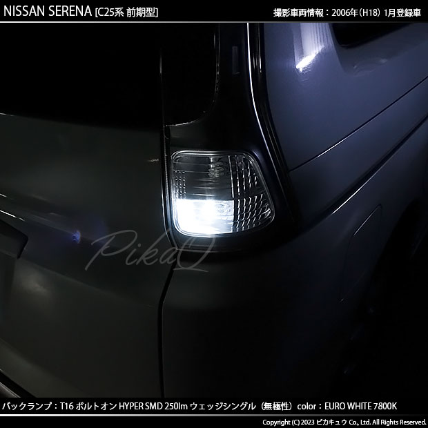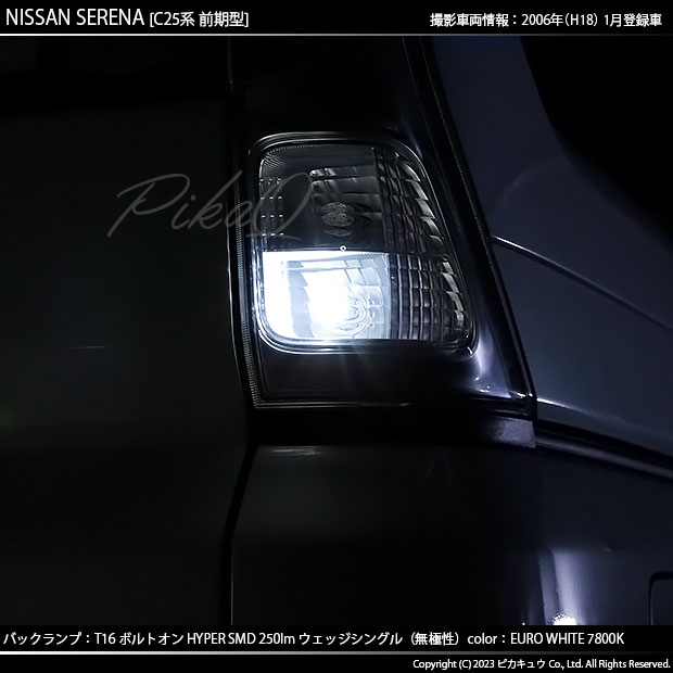 ニッサン セレナ (C25系 前期) 対応 LED バルブ バックランプ T16 ボルトオン SMD 蒼白色 ユーロホワイト 7800K 2個 5-C-2