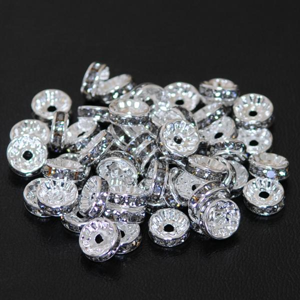 【メール便対応】平ロンデル ブラックダイヤモンド 10mm 50個セット ラインストーン台座シルバー ゴールド パーツ ビーズ 手作り┃