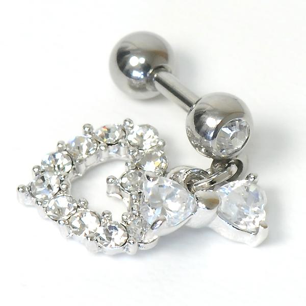 【メール便対応】バーベル ラインストーン ハート&リボン 14GA(1.6mm)クリアー【ボディピアス】YA009 ┃