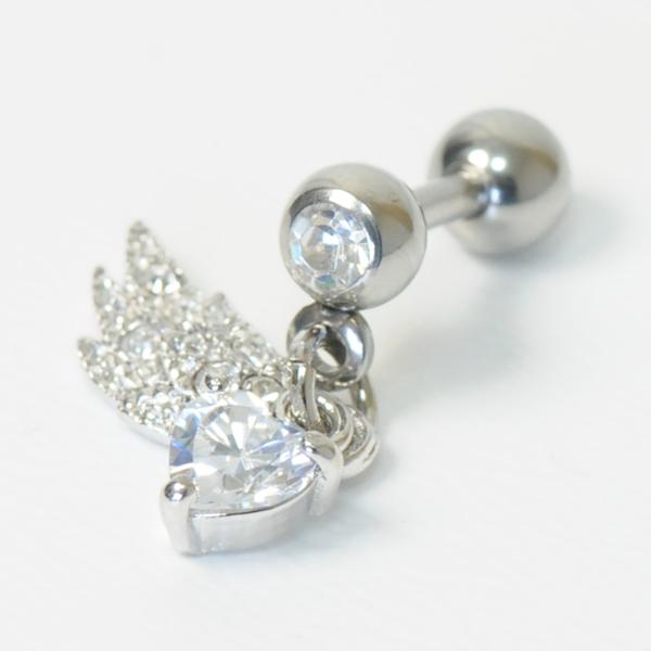 【メール便対応】バーベル ラインストーン ハート&フェザー(羽) 14G(1.6mm)クリアー【ボディピアス】YA016 ┃