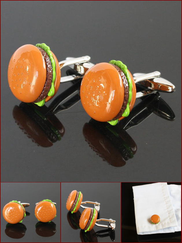 ハンバーガーをモチーフにしたユニークなカフスボタン
