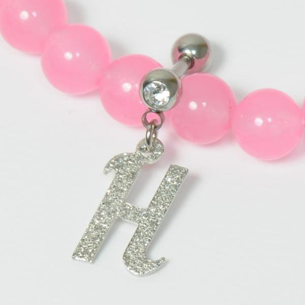【メール便対応】ボディピアス バーベル ラインストーン アルファベット H 16G(1.2mm)クリアー【イニシャル】YA00H ┃
