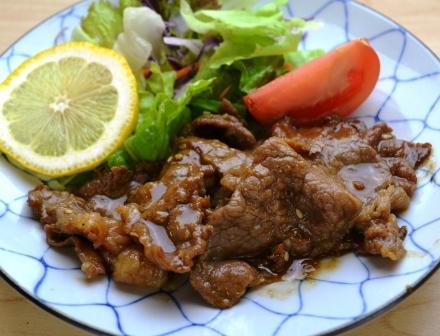 タレに牛肉を漬け込み、しっかりと味をつけました。オススメは野菜と一緒に炒めてください。