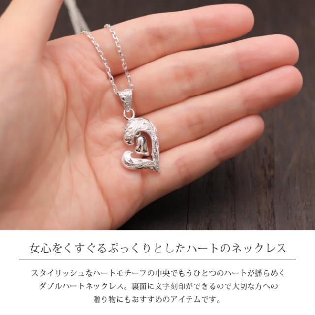 ハワイアンジュエリー ネックレス シルバー ネックレス 刻印 無料 誕生石入れ可 ダブルハート シルバー925 ギフトラッピング可能 チェーン 長さ選べる 彼女 妻 女性 レディース 誕生日 プレゼント ホワイトデー 卒業式 入学式 【品番:CG-SP2848】