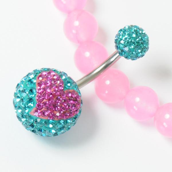 メール便 送料無料 ゴージャス キラキラ ヘソピアス ピンク ハート 14GA(1.6mm)【ボディーピアス スワロフスキー クリスタル ラインストーン へそピアス ヘソピ バナナバーベル ネイブル キラキラ】CE-04 ┃