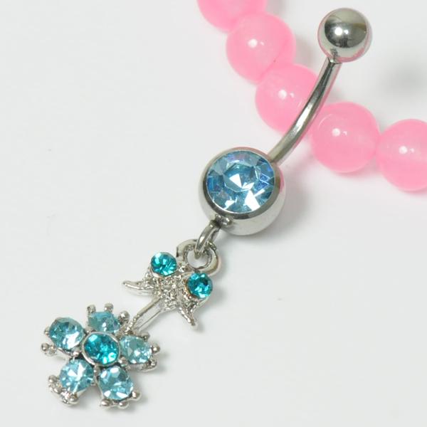 【メール便対応】ヘソピアス ゴージャス フラワーデザイン(花柄)ラインストーン 14G(1.6mm)アクア ボディピアス ラインストーン ヘソピ バナナバーベル ネイブル キラキラ h533-5 ┃