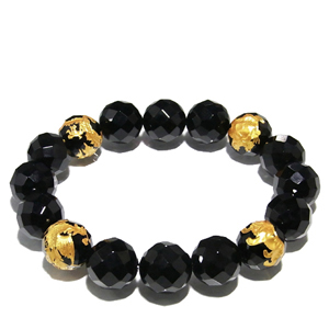 四神獣『青龍/朱雀/白虎/玄武』の彫り玉を四方にセットしたブレスレットです。彫玉は豪華な金色仕上げ。シックに輝くカットオニキスを使用!