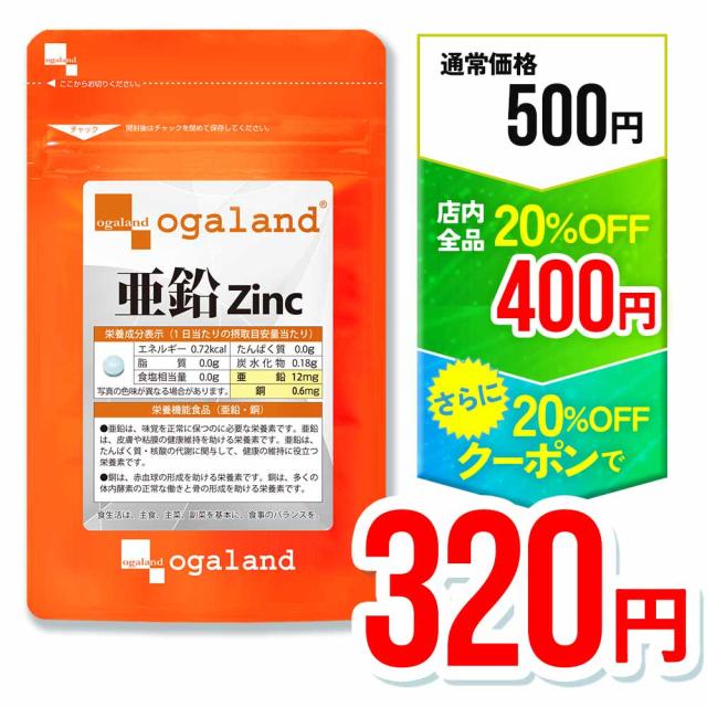 【W割引中!!】亜鉛 サプリ (約1ヶ月分) 【栄養機能食品】安心 サプリ 男性 おすすめ 女性 1粒 低価格 高評価 元気 ミネラル 必須ミネラル サプリメント 持続力 オーガランド _ ED _ JD _1K 11043