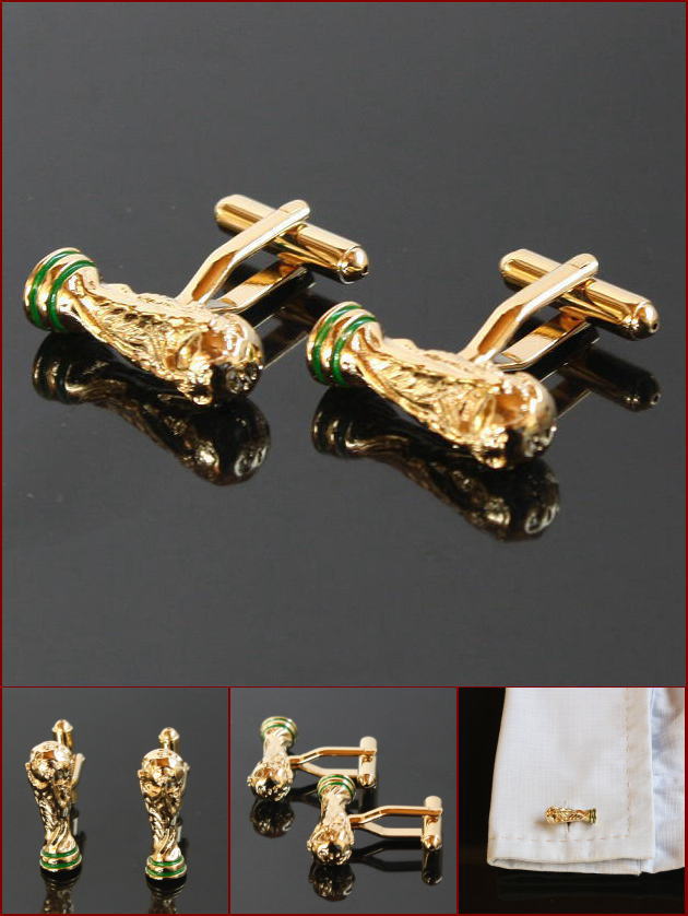 ワールドカップのトロフィーをモチーフにしたカフスボタン。
