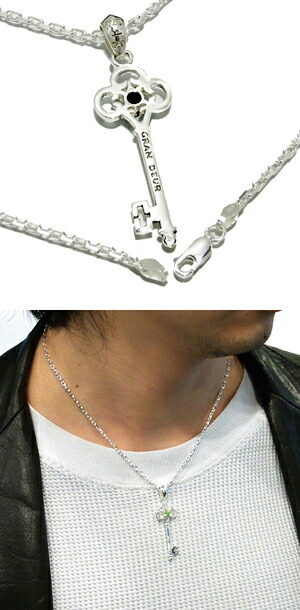 GRAN DEUR 天然石付き キー 鍵 モチーフ シルバーネックレス ガーネット トパーズ サファイア ペリドット 925 銀の蔵 メンズ ネックレス 男性用