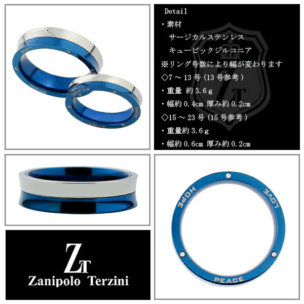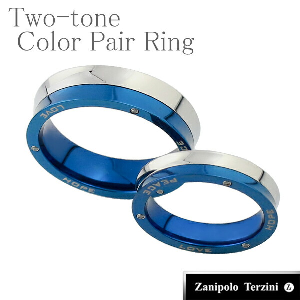 ☆送料無料☆【Zanipolo Terzini/ザニポロタルツィーニ】ツートーンカラー サージカルステンレスペアリング 7〜23号【HOPE PEACE LOVE 〜希望/平和/愛〜】