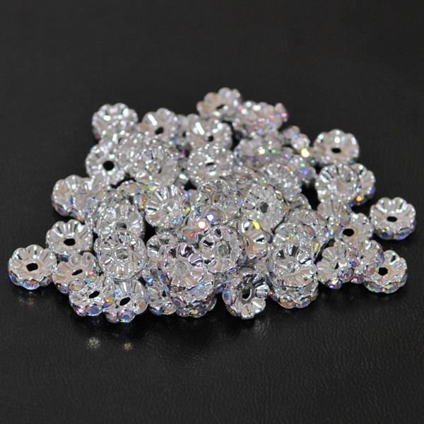 【メール便対応】波ロンデル クリスタルAB 10mm 10個セット ラインストーン台座シルバー ゴールド【パーツ ビーズ 手作り】┃