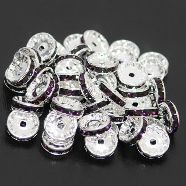 【メール便対応】平ロンデル アメジスト 10mm 10個セット ラインストーン台座シルバー ゴールド【パワーストーン パーツ ビーズ】┃