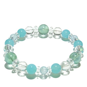 シーブルーカルセドニー・アクアマリン・フローライトをミックスしたブレスレットです。