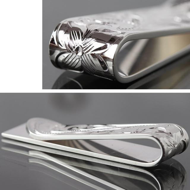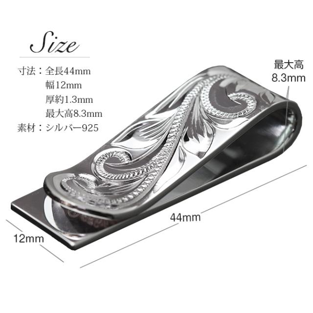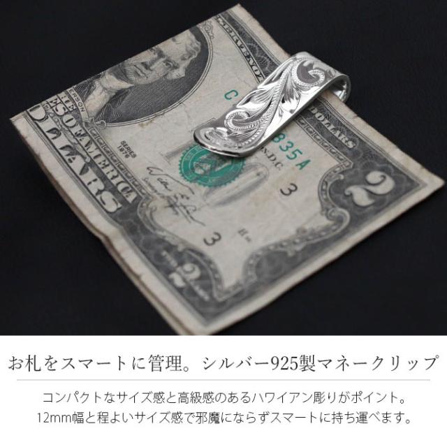 マネークリップ 幅12mm 名入れ 刻印 無料 誕生石入れ可 シルバー925 札ばさみ ハワイアンジュエリー スクロール柄 シンプル スマート会計 札入れ ブランド メンズ レディース 誕生日 プレゼント ホワイトデー 卒業式 入学式 【品番:SMCM104】