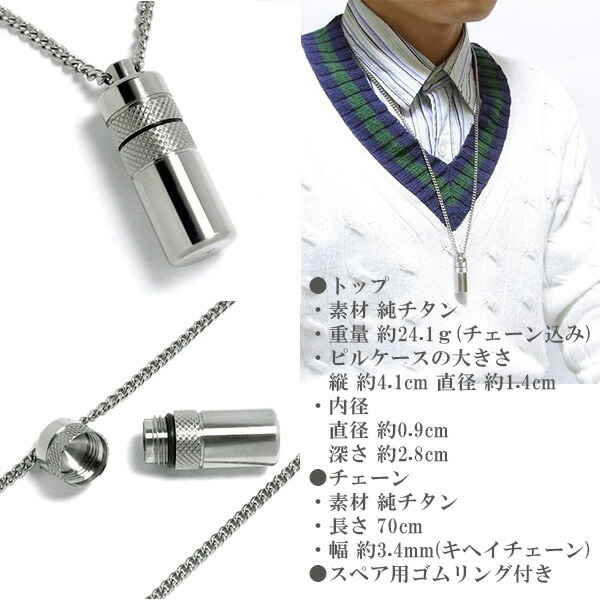 ピルケースネックレス チタンアクセサリー Titanium ペンダント【新宿 銀の蔵】