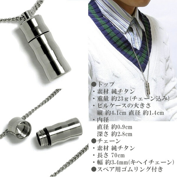 ピルケースネックレス チタンアクセサリー Titanium ペンダント【新宿 銀の蔵】