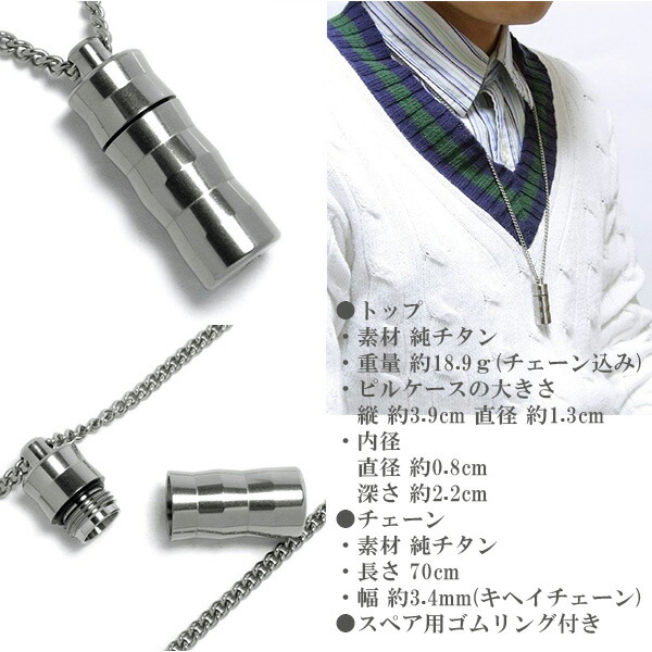 ピルケースネックレス チタンアクセサリー Titanium ペンダント【新宿 銀の蔵】