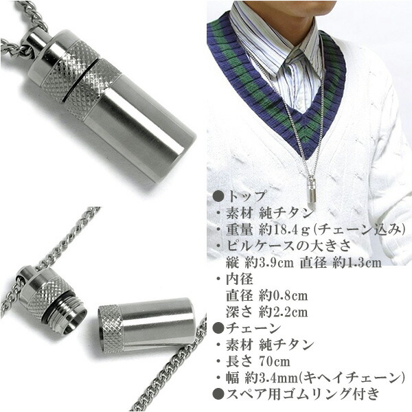 ピルケースネックレス チタンアクセサリー Titanium ペンダント【新宿 銀の蔵】