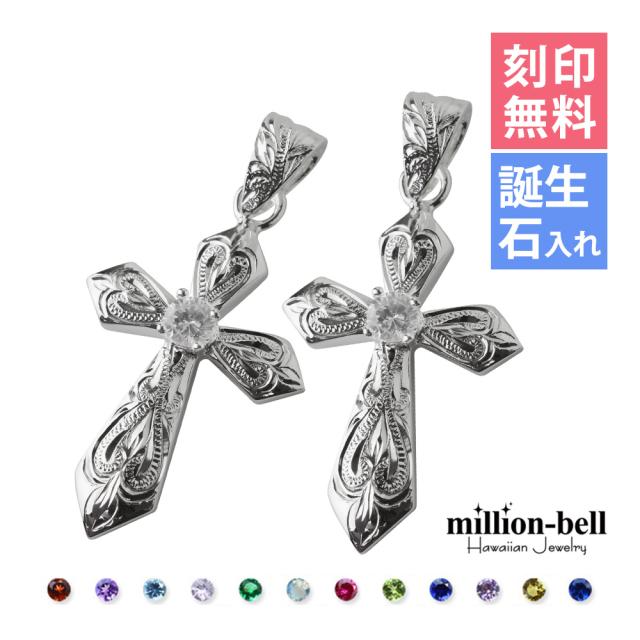 ハワイアンジュエリー シルバー ペアペンダントトップ 2個セット 誕生石選べる クロス 十字架 シルバー925 ネックレス チェーン別売 ペンダントヘッド カップル 夫婦 プレゼント ホワイトデー 卒業式 入学式 【品番:SPM2840P】