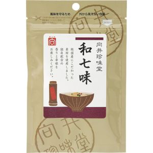 ■国内産原料7種類の香辛料を程よく調合し、辛味をおさえた風味ある七味です。