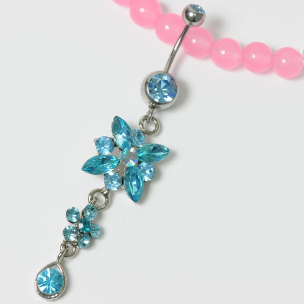 【メール便対応】ヘソピアス ゴージャス ラインストーン 16G(1.2mm)アクアカラー ボディピアス カラージュエル ヘソピ バナナバーベル ネイブル キラキラ16ゲージ(1.2ミリ) h538-2 ┃