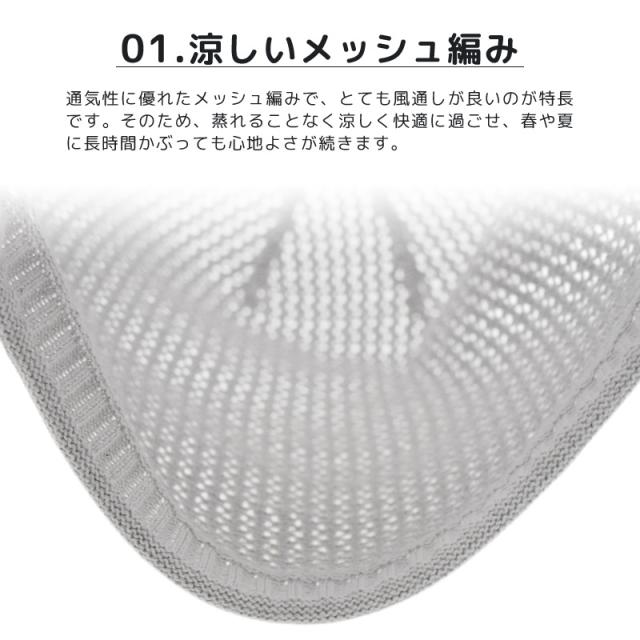 綿100%素材で、真夏でも蒸れずに快適にかぶれるメッシュ編みのZactionオリジナルニット帽です。通気性抜群のメッシュ編みは風通しが良く、長時間かぶっても涼しさが続きます。締め付け感の少ないロールアップタイプの被り口は、ふんわりとした優しい肌触りでストレスフリーな被り心地。後ろにたるませてボリュームを出すのがおすすめです。シンプルなデザインなので、カジュアルからきれいめまでどんなスタイルにも合わせやすく、コーディネートの幅が広がります。流行に左右されない定番アイテムとして、あなたの日常に寄り添うこと間違いなし。肌に優しいサラサラとした感触で、毎日手放せなくなる心地よさです。