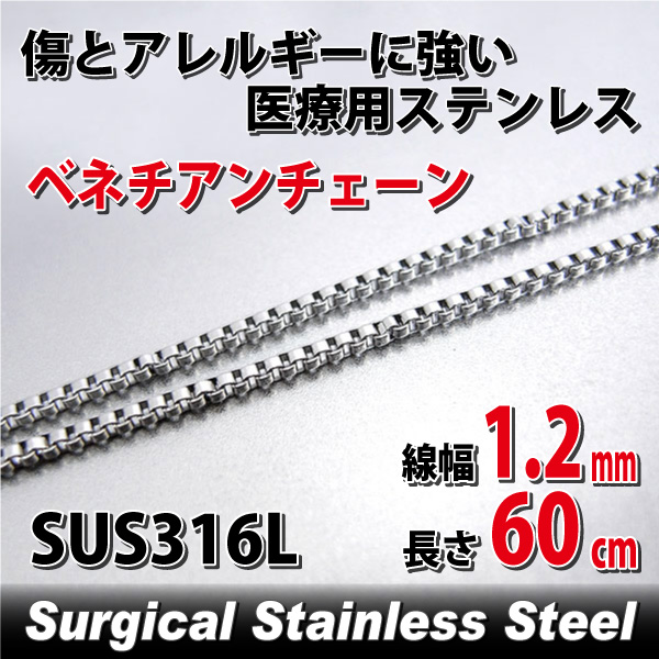 ステンレス ベネチアンチェーン 幅1.2mm 60cm ネックレス 鎖 サージカルステンレス