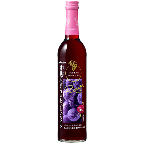 爽やかな「マスカット」と甘さたっぷりな「コンコード」を使用した、華やかで軽やかな果実味のあるスイートな赤ワインです。ワイン独自の渋みや酸味をやわらげるために、ぶどう本来の甘さにこだわりました。アルコール度数は低めの4%です。