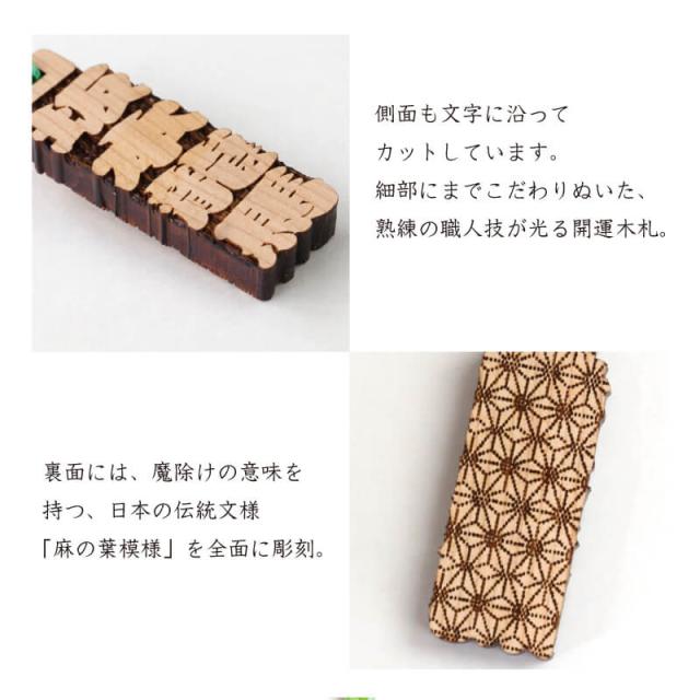 日本の伝統・文化を受け継いだ木札。 縁起物として古くからさまざまな用途に使われました。 あなたにきっとご利益あるかも♪ 大切な人への贈り物にも最適です! 1. 日本の伝統文化 木札の由来 木札は、日本人の暮らしの中で様々な場面に用いられていました。 その中でも、木札が縁起物とよばれるようになった理由には 以下のような由来があります。 一つ目は、江戸火消しの「消し札」。 「火事と喧嘩は江戸の華」と言われるほど江戸時代は火事が多く、 町火消しが火事を防いだ際に、組名が記された札を消し口に掲げていました。 以来、木札は火難、災厄を逃れる縁起物として今に伝わっています。。 二つ目は、神社やお寺でも販売されている「身代わり札」。 名前が刻まれた木札は、その人の分身。 札が割れた際はお札が身代わりとなって守ってくれたという伝承が残っており、 古来よりお守りとして使われていました。 三つ目は、願い事を叶える「納札」。 お寺や神社を参拝する人が、祈願成就のために名前や出身地を書いて納める札のことで、千社札とも呼ばれています。 現在は紙のものが一般的ですが、昔は木札を納めていました。 どれも古くからの日本文化を感じられる由来となっておりますが、 現在ではおしゃれ感覚で身につける人も多く見られます。 キーホルダーやストラップのほか、 名札やボトルキープ用のネームタグなど、様々な用途で使われています。 男女年齢問わず、プレゼントにもおすすめのアイテムです。 2. こだわりの木材 当店で作る木札は全て自社製! 素材にこだわり、職人が一つ一つ丁寧に仕上げました。 温かみのある手触りとやさしい木の香りが、安らぎをもたらします。 また自然木は、時間が経つほどに風合いなどの深みが増していくので、永く愛着を持ってお使いいただけます。 大切な思い出と共に経年変化を楽しめる逸品です。 一位 −イチイ − 一位(イチイ)という名前の通り、勉強や商売で「一番」に なれるようにと学業成就や商売繁盛の願いをこめることが多く、 昔から縁起のよい木として親しまれています。 3. 名前彫刻 当店自慢の技術で一つ一つ心を込めてお名前を刻みます。 名入れ専門店である当店の確かな技術力で細部までしっかりと彫刻! 自分の名前が入った木札は世界で一つの特別な逸品。 大切な家族や友人へのプレゼントとして贈れば、 喜ばれること間違いありません。 裏面彫刻- 麻の葉模様 - 裏面には麻の葉模様が入ります。 麻は成長が早く真っすぐ伸びることから、子どもの健やかな成長を願う文様です。 また、邪気を払うなど魔除けの意味も込められており、縁起のよい文様として親しまれてきました。 ≪こんなシーンにおすすめ≫ ・ 友達への 誕生日プレゼント に ・ 神輿 や 縁日 花火大会 に ・ 家族 やチーム・仲間同士でお揃いに ・ 父の日 敬老の日 のプレゼントに ・ 還暦 古希 喜寿 傘寿 米寿 卒寿 白寿 百寿 などの長寿のお祝いに ・ お子様のバッグや通学カバンに着けて名札代わりに ・ 卒業 卒団 卒部 などの 記念品 に ・ 創立記念 周年記念 のプチギフトに |