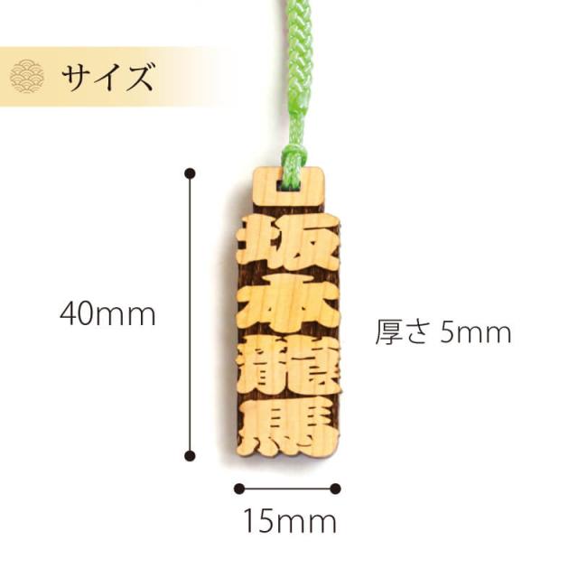 | サイズ | サイズ:木札:縦40mm、横15mm、厚さ5mm 根付紐:70mm |